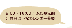 定休日につきましては左記カレンダーでご確認下さい。 |